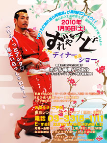 日出郎&ずれやまズレ子が司会と特別ゲストライブで出演します。 ◆SUGUYA presents GROOVY STREET DANCE VOX 〜GACCHO! エンターテイメントDP 2010大忘年会! ◇日時:12月30日[水] 夜の部】OPEN21:30/START22:00〜 ◇会場:六本木morph_tokyo ◇料金:前売3000円/当日3500円(drink別) ◇予約・問合せ:SUGUYA BLOG |